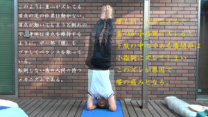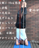 足の親指重心と小指重心の変化によって、膝が移動することを何か解りやすく表現出来ないものかと考え、ヨガの「頭を付けた逆立ち」を考えました。