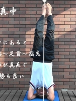 足の親指重心と小指重心の変化によって、膝が移動することを何か解りやすく表現出来ないものかと考え、ヨガの「頭を付けた逆立ち」を考えました。